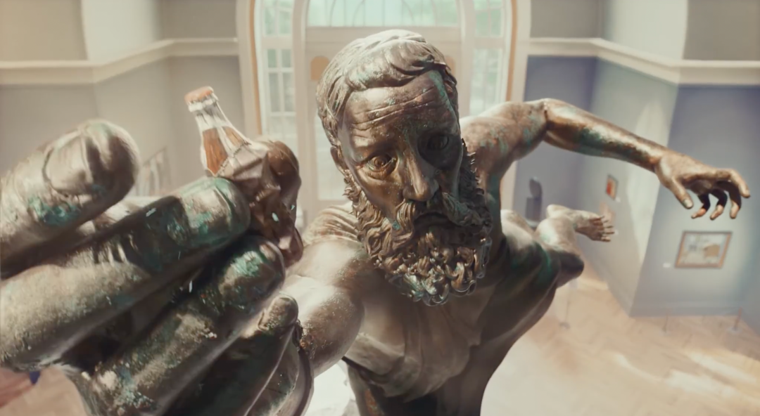 整個(gè)廣告片通(tōng)過現(xiàn)實與虛拟的(de)無縫銜接,以可(kě)口可(kě)樂(yuè)瓶作(zuò)為(wèi)連接點,展現(xiàn)了(le)一(y☆ī)場(chǎng)博物(wù)館裡(lǐ)的(de)奇想之旅。